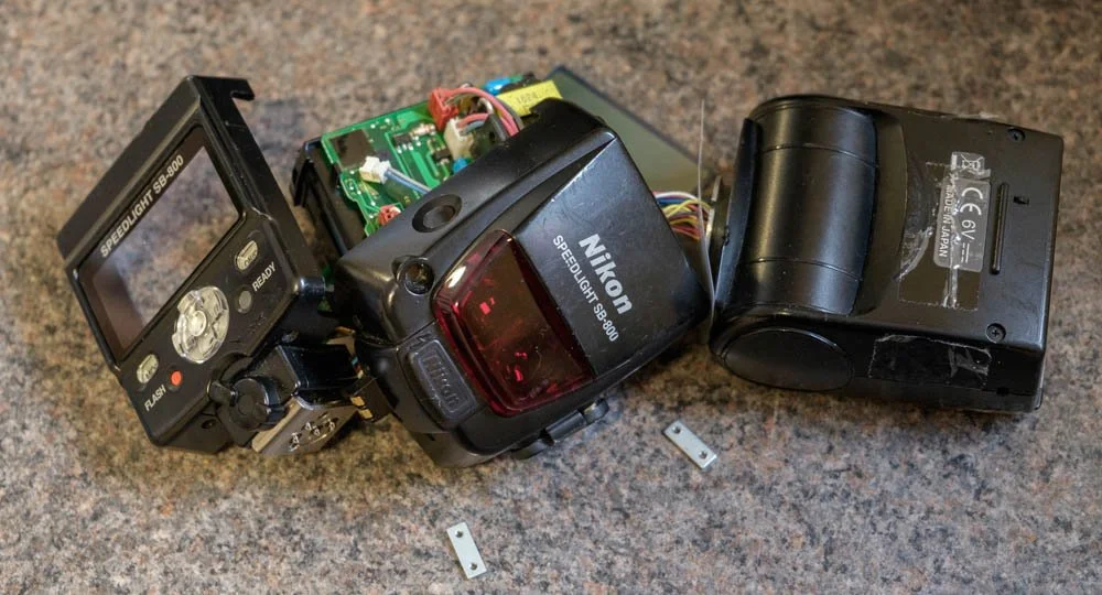 Yesterday was a bad day. While out shooting a house, one of my trusty Nikon SB800’s fell off a light stand as I was moving it into place, and stopped working. I stuck it in my Peli case and looked at it later on, with a view of being a hero & mending it in a DIY stylee. Armed with a set of mini screwdrivers, and a Youtube tutorial, I set about dismantling it with aplomb.