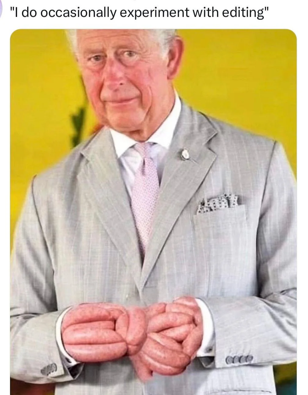 Some rich bird decides to do herself a favour and tries to retouch out a few “imperfections” in a family photo, and the world literally gans mad. The recent furore over the Princess of Wales’ attempts at retouching (as opposed to editing, which ids the curation of images meant for retention) is the most ridiculous waste of space i’ve seen in a long time. Even that left-wing bastion of fair play - The Guardian - has indulged itself with a detailed forensic examination of the shite family photo, detailing 20 areas of amateur botchism across the canvas. Various picture agencies have ordered the distribution of the image to be immediately curtailed across all media while more and more news sources uncover more and more rookie retouching errors.