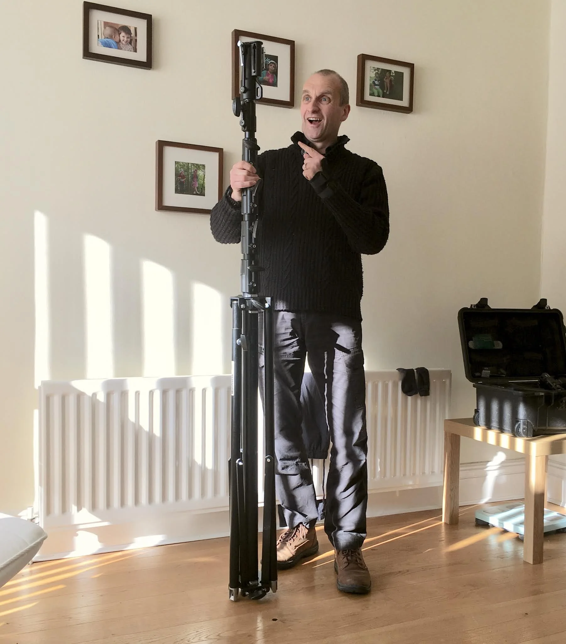 My list of supportive equipment - tripods, brackets, clamps, and holding devices is as long as my arm. The stupidly expensive Manfrotto giant camera stand and motorised remote-control pan/tilt head have now become completely redundant with the purchase of my tiny DJI Mini 2 drone which can do the job in 3 minutes instead of the 50 minutes involved in erecting, and packing away of the 27ft monstrosity that requires a car the length of the Forth Bridge to transport anywhere.