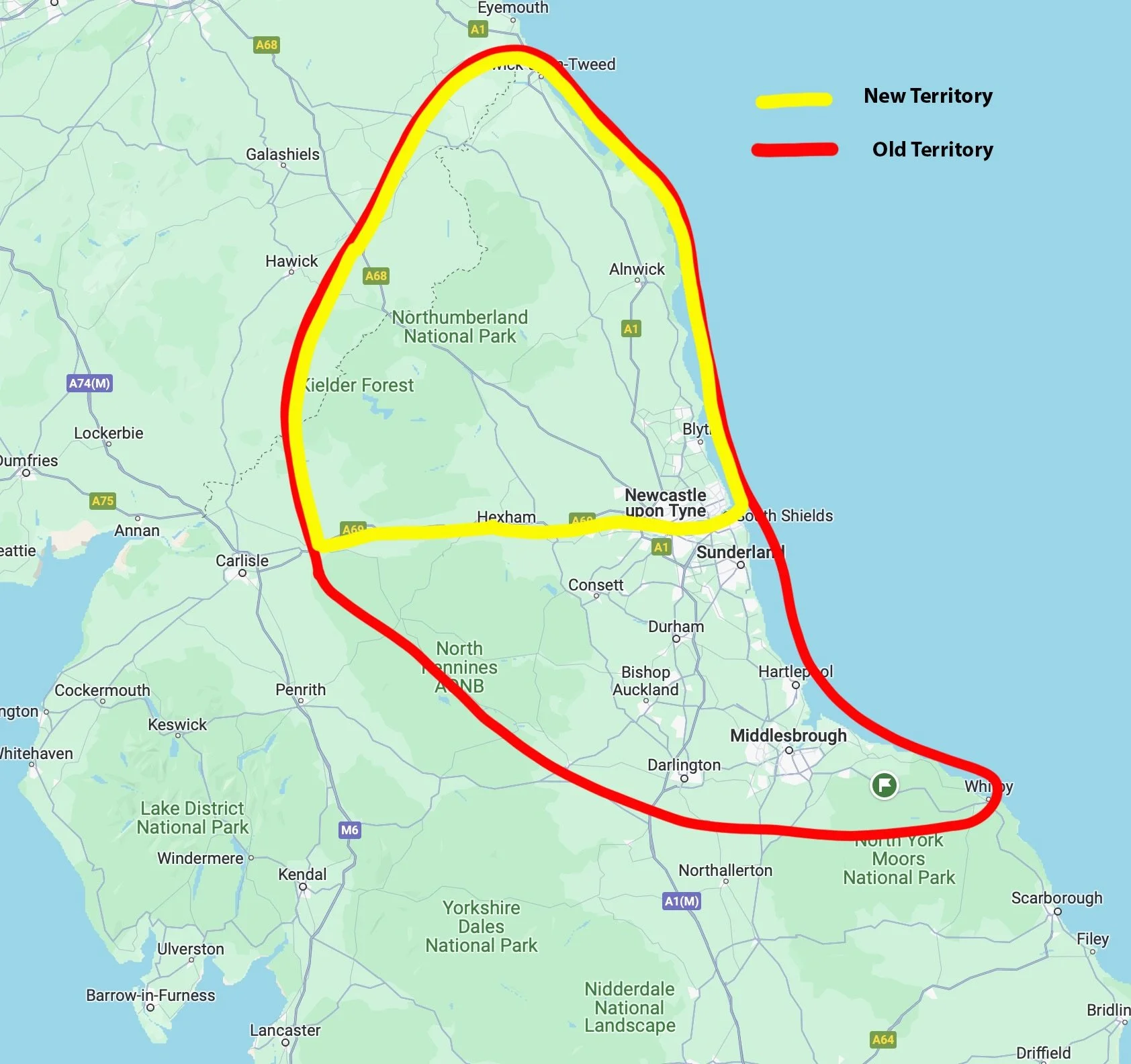 After 8 Years of suffering hours and hours of driving every single day, I took the decision to offload the work situated in the outer regions of my self-imposed territory - Durham and Teeside.